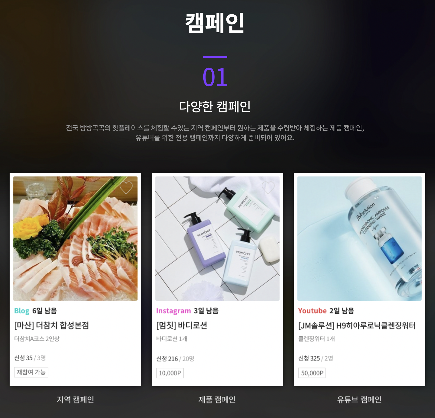 광고 게시글을 해 주는 댓가로 협찬을 받을 수 있는 플랫폼 입니다
