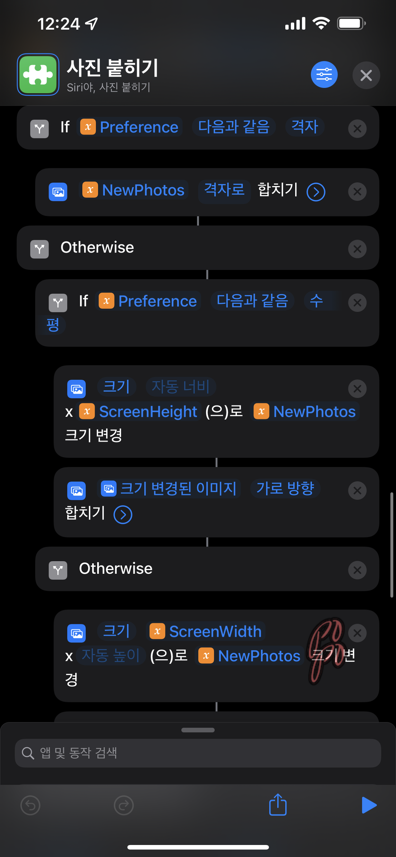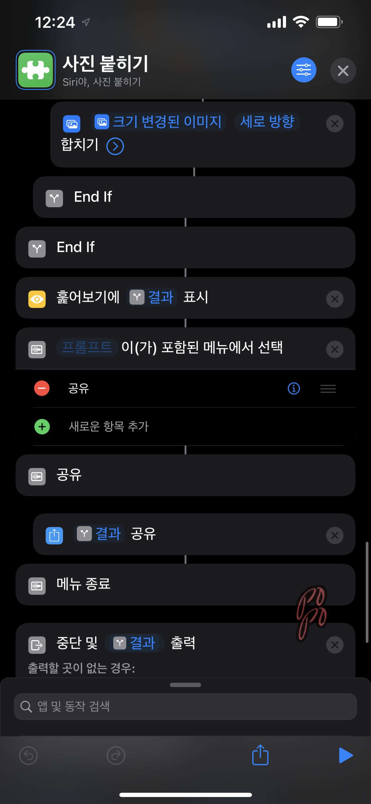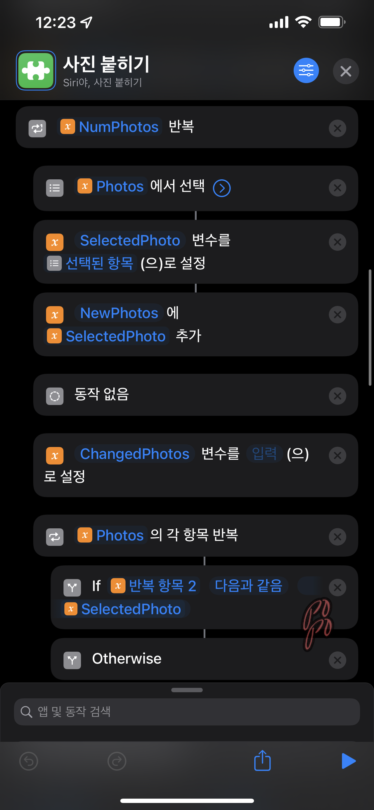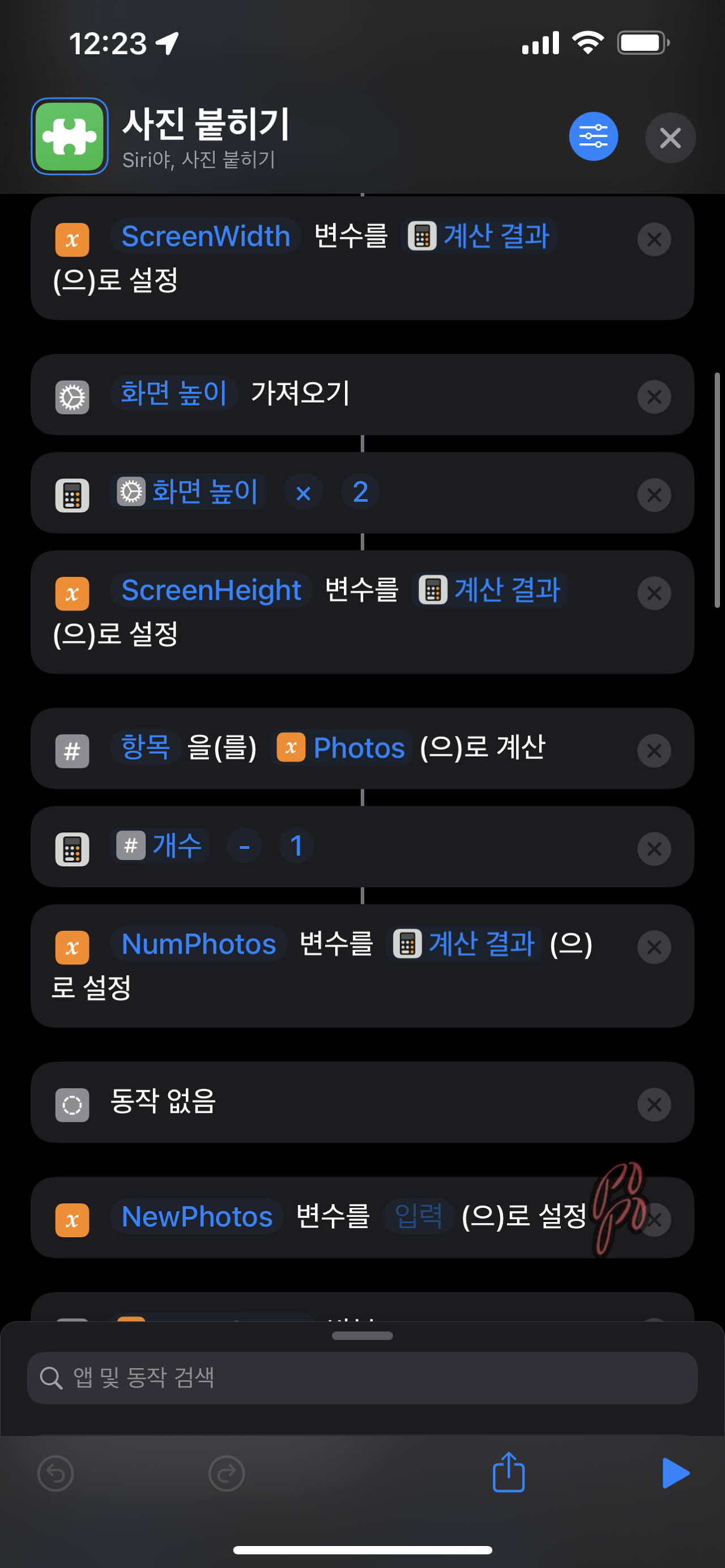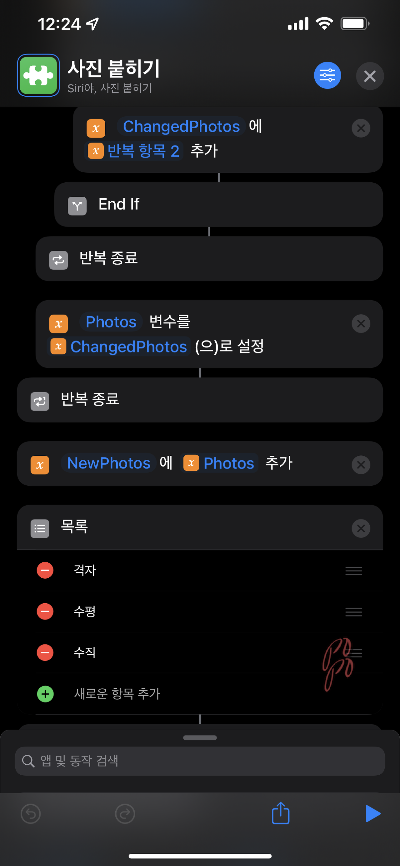 사진 붙히기 단축어는 이렇게 이루어져 있습니다
