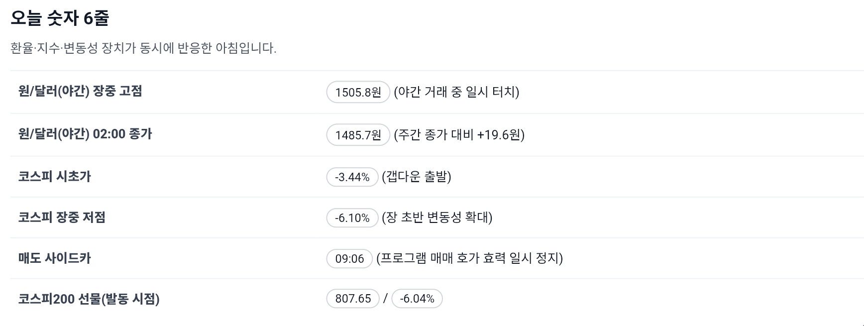 오늘 아침 제일 먼저 눈에 들어온 건 두 가지였다. 밤사이 원/달러가 1500원을 건드렸다는 알림, 그리고 장 시작과 동시에 코스피가 3% 넘게 갭다운으로 출발했다는 속보다. “숫자 하나 좀 올랐다고 뭐가 달라지겠어?”라고 넘기기 쉽지만, 환율이 1500원대에 닿는 순간부터는 분위기가 달라진다. 해외결제부터 서학개미 수익률, 기업 실적, 그리고 내 주담대·전세대출 금리까지 한 줄로 이어지는 구간이기 때문이다.