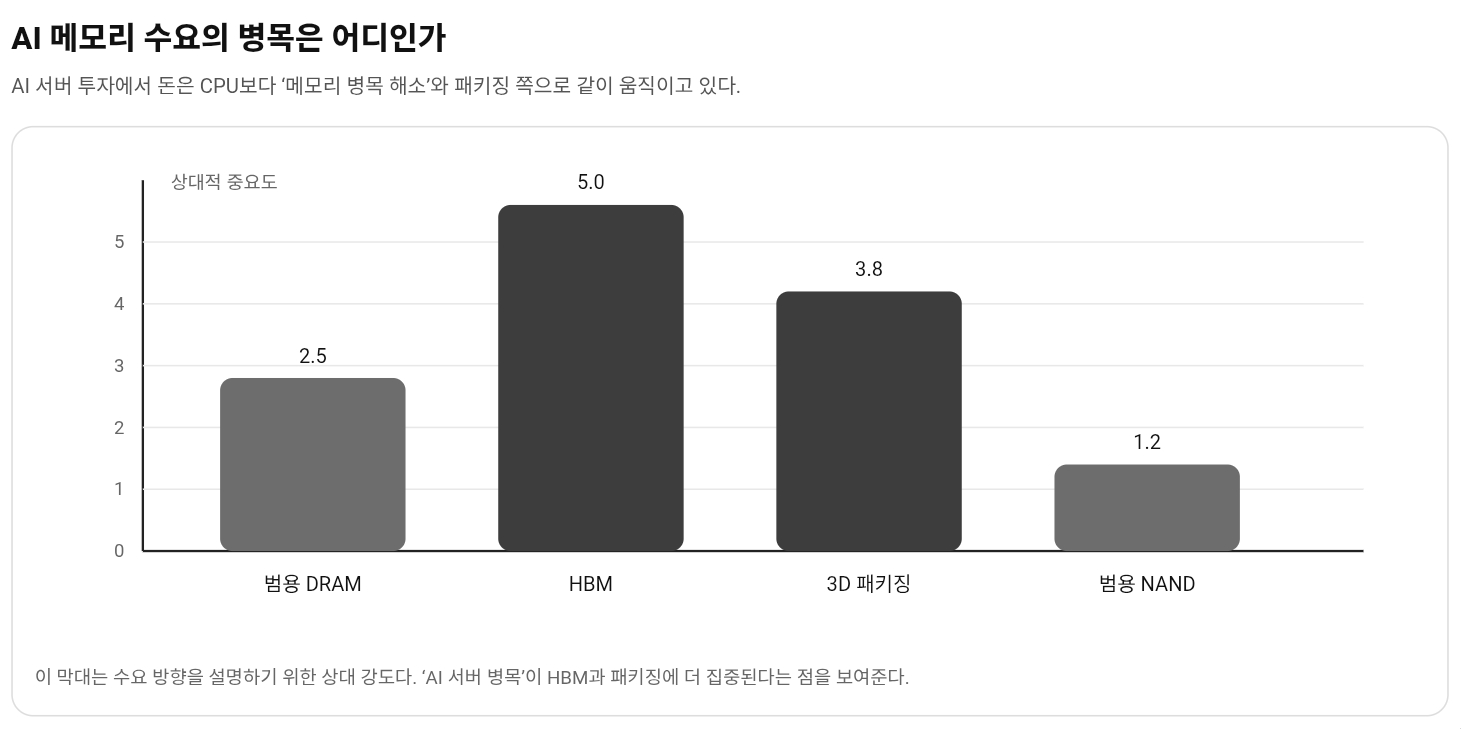 결국 오늘 뉴스의 핵심은 “SK하이닉스가 좋은 회사다”가 아니다. 글로벌 AI 투자의 병목이 메모리와 패키징으로 더 선명하게 이동하고 있다는 점이다. 그 변화는 한국 반도체 시장 전체에 더 중요하다. 이제 시장은 누가 AI 시대의 중심에 있느냐보다, 누가 병목을 가장 빨리 풀 수 있느냐를 보기 시작했다.