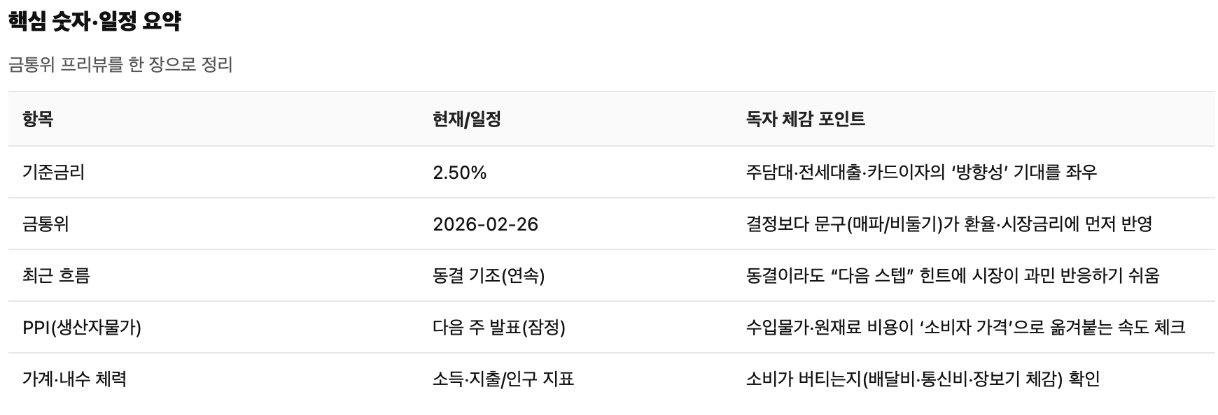 한국은행 2026년 1월 생산자물가 0.6%↑(5개월 연속). 칩·금속·서비스 원가가 금리 인하 기대, 원/달러, 전세·주담대 이자와 KOSPI 섹터에 어떻게 번지는지 직장인 시선으로 정리. 서학개미 vs 국내주식 관점까지. 지갑에 닿는 순서로 풀었다.서론‘물가’라는 단어는 매달 뉴스에 뜨는데, 정작 우리 생활을 먼저 찌르는 건 소비자물가(CPI)보다 생산자물가(PPI)인 경우가 많습니다. 기업이 물건을 만들고 서비스를 제공하는 과정에서 드는 비용이 올라가면, 그다음은 둘 중 하나거든요. 가격표를 올리거나, 가격표는 그대로 두고 품질·구성·혜택을 조용히 깎거나. 둘 다 결국 내 지갑에서 빠져나갑니다.한국은행이 2월 24일 발표한 2026년 1월 생산자물가가 전월 대비 0.6% 상승했습니다(전년 동월 대비..